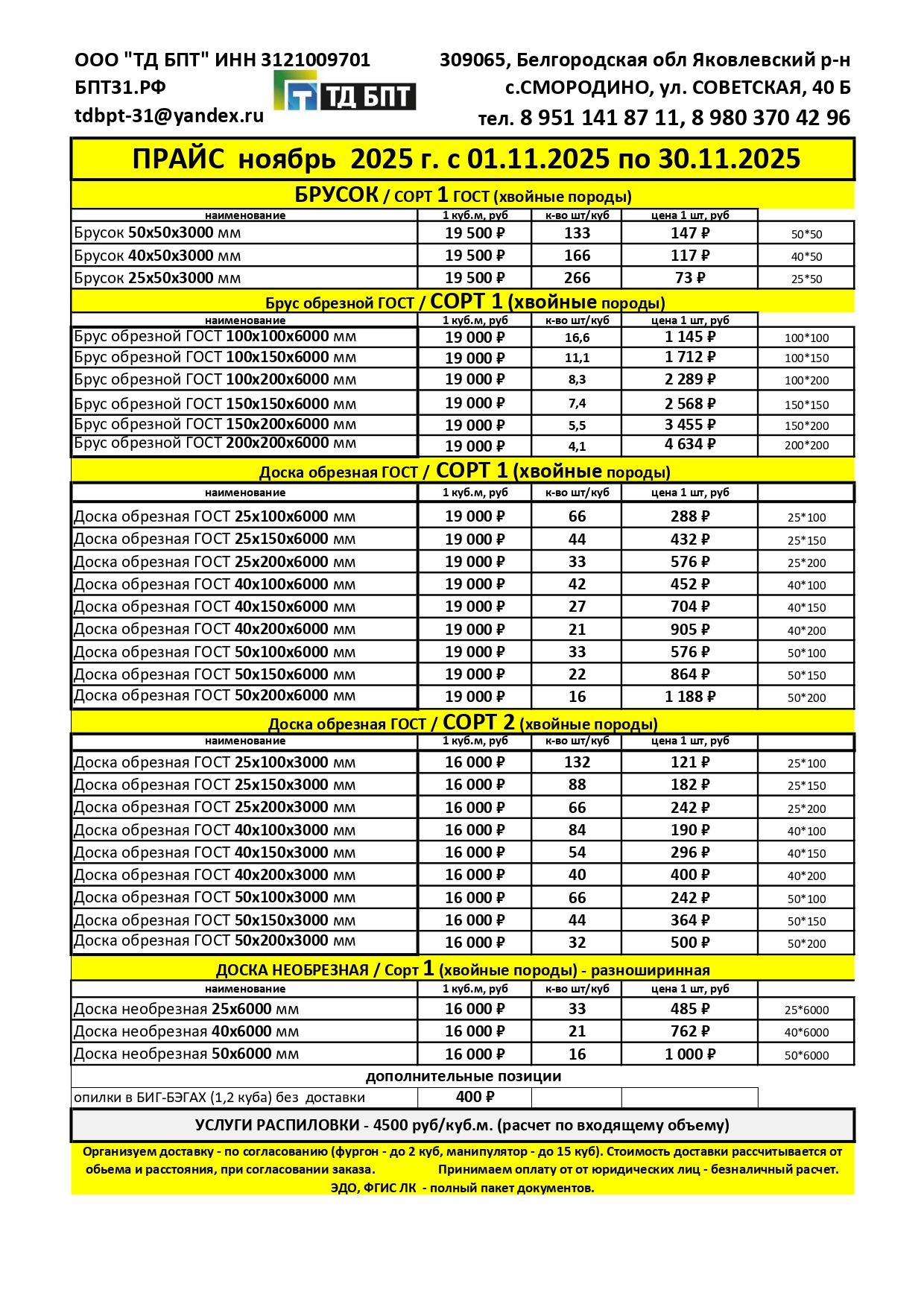 | ПРАЙС-ЛИСТ от 01.11.2025 | |||